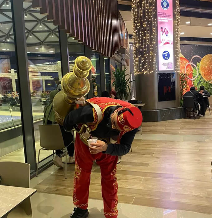 Osmanlı Şerbetçisi Kiralama İstanbul ile 10 yılı aşkın süredir size hizmet vermenin gururunu yaşıyoruz. Osmanlı döneminin vazgeçilmezi olan seyyar Osmanlı şerbetçileri arkalarına aldıkları güğüm ve ibrikleriyle bellerine doladıkları bardaklıklar ile sokaklarda dolaşırlar. Musluğu üstünden kıvrılan ibriğin ağzını eğerek şerbeti bellerine doladıkları bardaklara doldururdu. Şerbetçiler “Şerbetçi Şerbet! Buz Gibi Şerbet Buz Otuz iki Dişe Keman Çaldırır!” diye bağırırlardı.