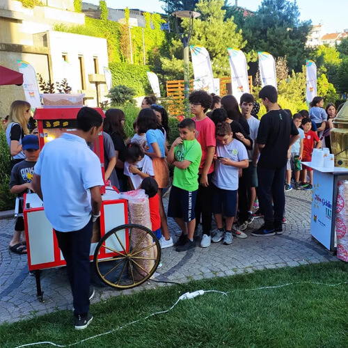 Pamuk Şeker Arabası kiralama talep ettiğiniz zaman ulaşım bize aittir. Pamuk Şeker Makinası talep ettiğinizde Pamuk şeker yapacak personeller ve gerekli ekipmanlar hepsi birlikte gelmektedir. Pamuk Şeker Dağıtım etkinliğinizin başlamasının 1 saat öncesinde etkinlik alanına gelerek gerekli tüm hazırlıkları tamamlıyoruz. Etkinlikte çalışacak ekip arkadaşlarımız güler yüzlü ve hijyen kuralları göz önünde olacak şekilde dağıtım yapmaktadır.