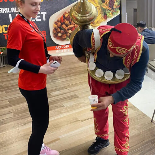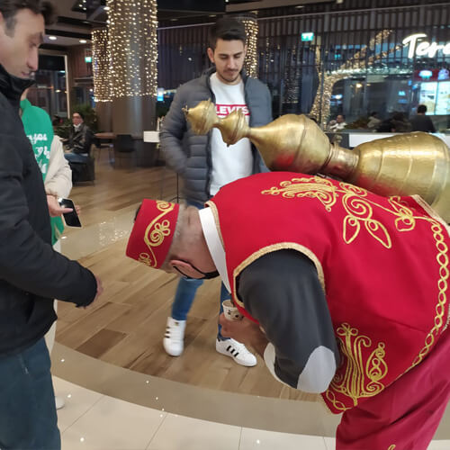 Osmanlı Şerbetçisi Kiralama İstanbul ile 10 yılı aşkın süredir size hizmet vermenin gururunu yaşıyoruz. Osmanlı döneminin vazgeçilmezi olan seyyar Osmanlı şerbetçileri arkalarına aldıkları güğüm ve ibrikleriyle bellerine doladıkları bardaklıklar ile sokaklarda dolaşırlar. Musluğu üstünden kıvrılan ibriğin ağzını eğerek şerbeti bellerine doladıkları bardaklara doldururdu. Şerbetçiler “Şerbetçi Şerbet! Buz Gibi Şerbet Buz Otuz iki Dişe Keman Çaldırır!” diye bağırırlardı.